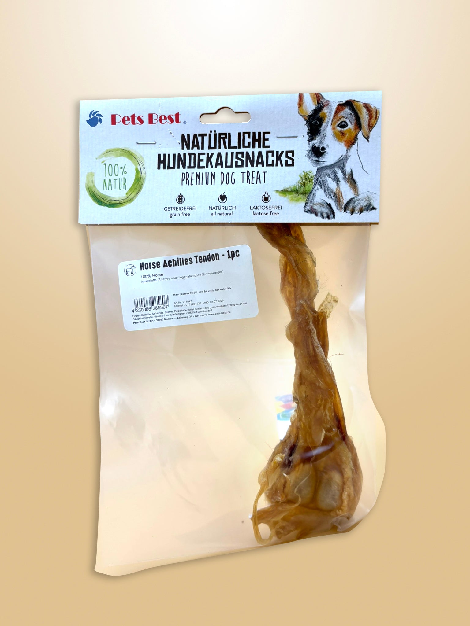Onze volledig natuurlijke paardenpees is een smakelijke, gezonde kauwsnack gemaakt van slechts één ingrediënt: paardenpees, zonder toevoegingen of kunstmatige smaakstoffen. De smaak is 100% natuurlijk.