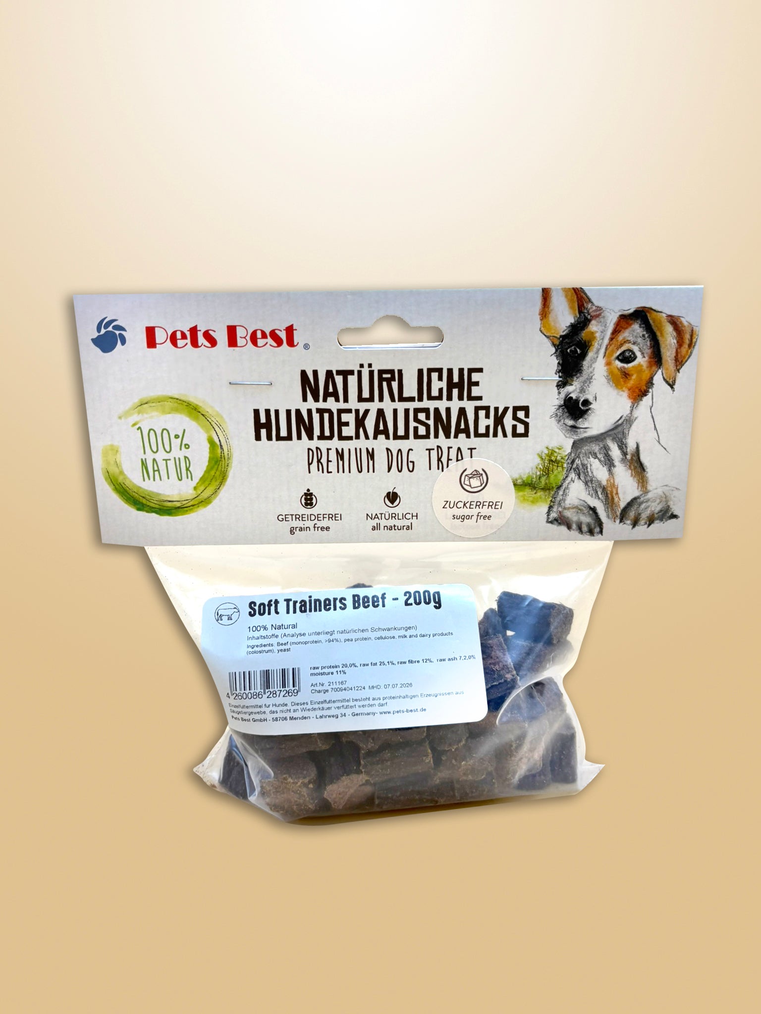 De Soft Trainers Rund zijn een soortspecifieke, aanvullende hondensnack waar elke hond dol op zal zijn. Ze zijn perfect als beloning tijdens het trainen. Dankzij de zachte consistentie zijn ze gemakkelijk te breken en te portioneren. Bovendien zijn ze niet vet, wat een groot voordeel is!